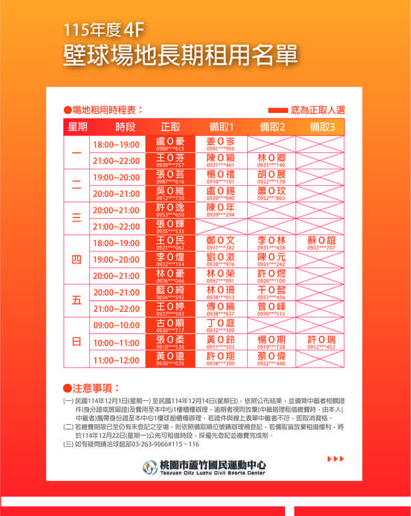 ●聯絡資訊 : (球館部) 03-2639066 #115